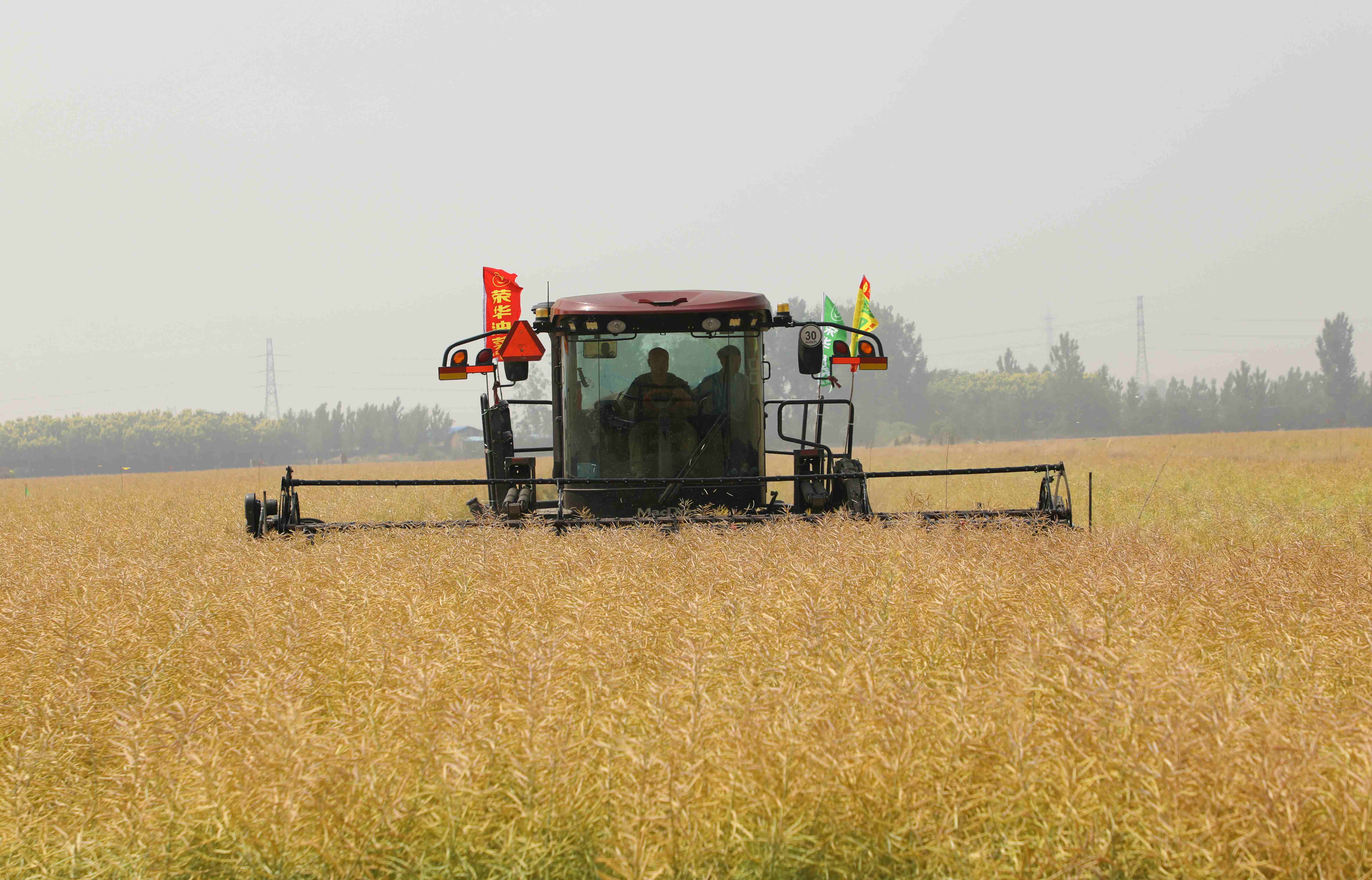 5月26日,河南省新鄉市鳳泉區大塊鎮東莊村的6000畝金鳳凰油菜喜獲豐收。金燦燦的油菜莢顆粒飽滿、壓彎枝干。種植戶正用大型機械收割、撿拾,確保顆粒歸倉。